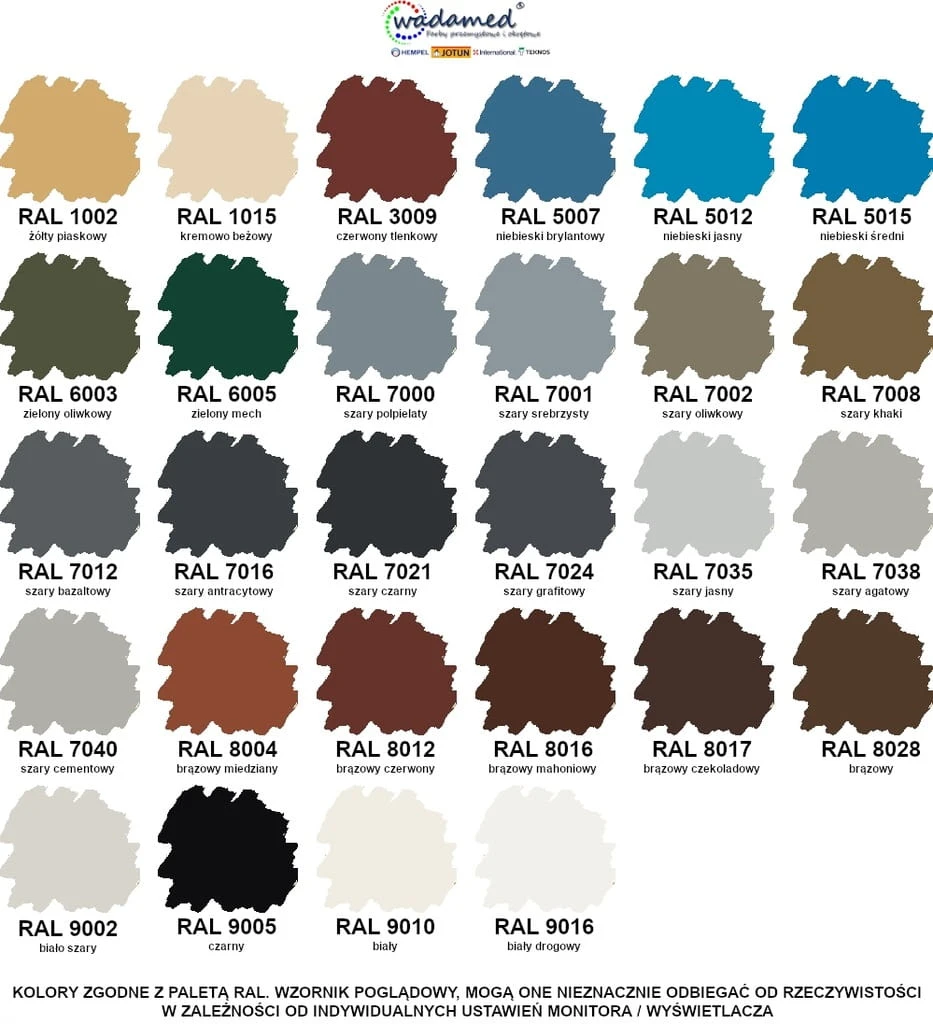 - Wydajność teoretyczna wynosi: 7 m2/ltr przy grubości 60um